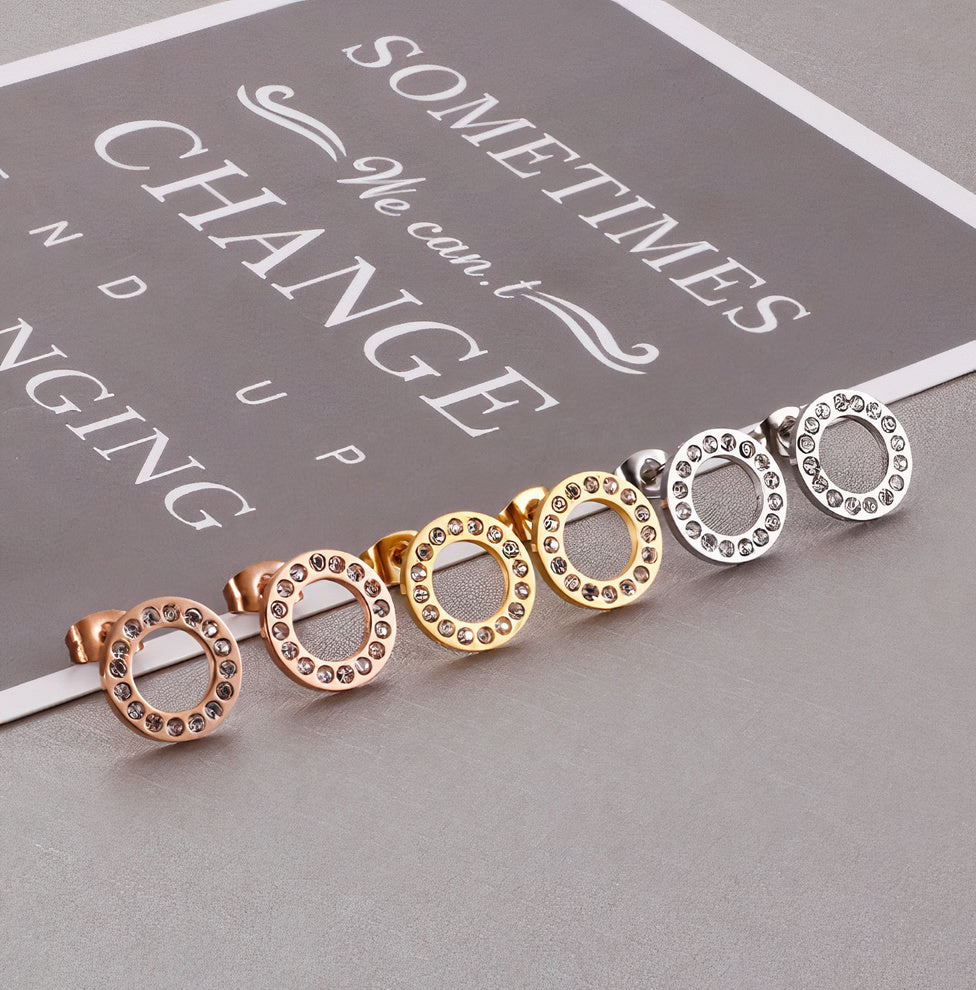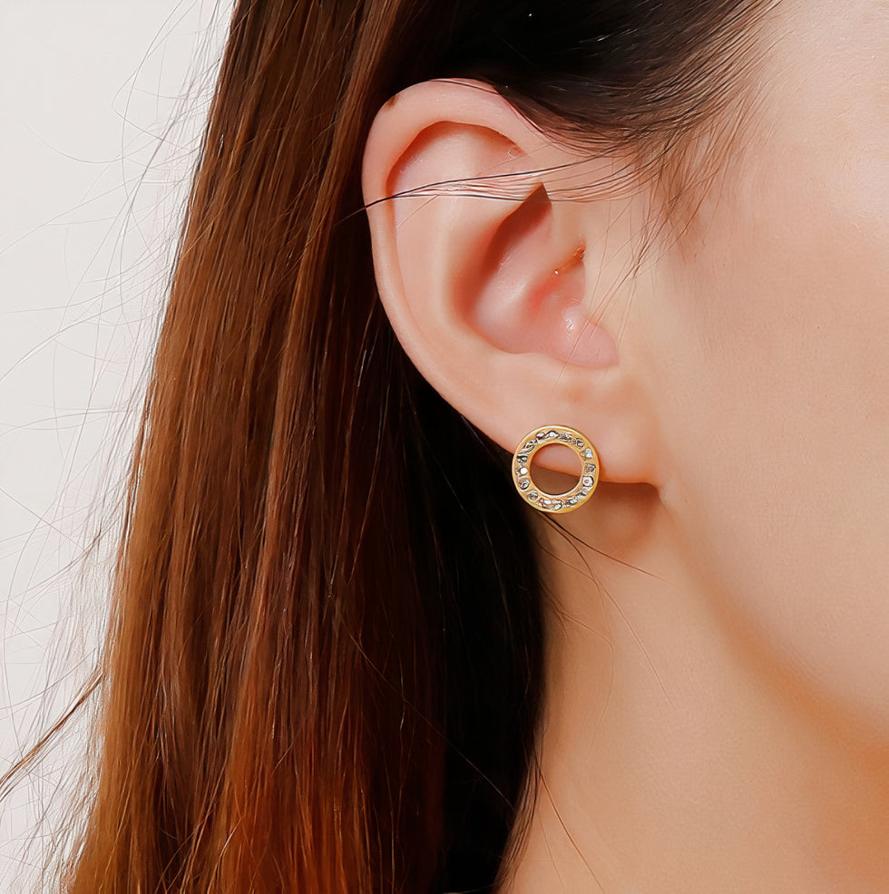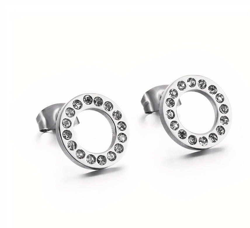 Förvandla din stil med dessa eleganta och iögonfallande örhängen formade som ringar, prydda med gnistrande kristaller runt hela ringen.